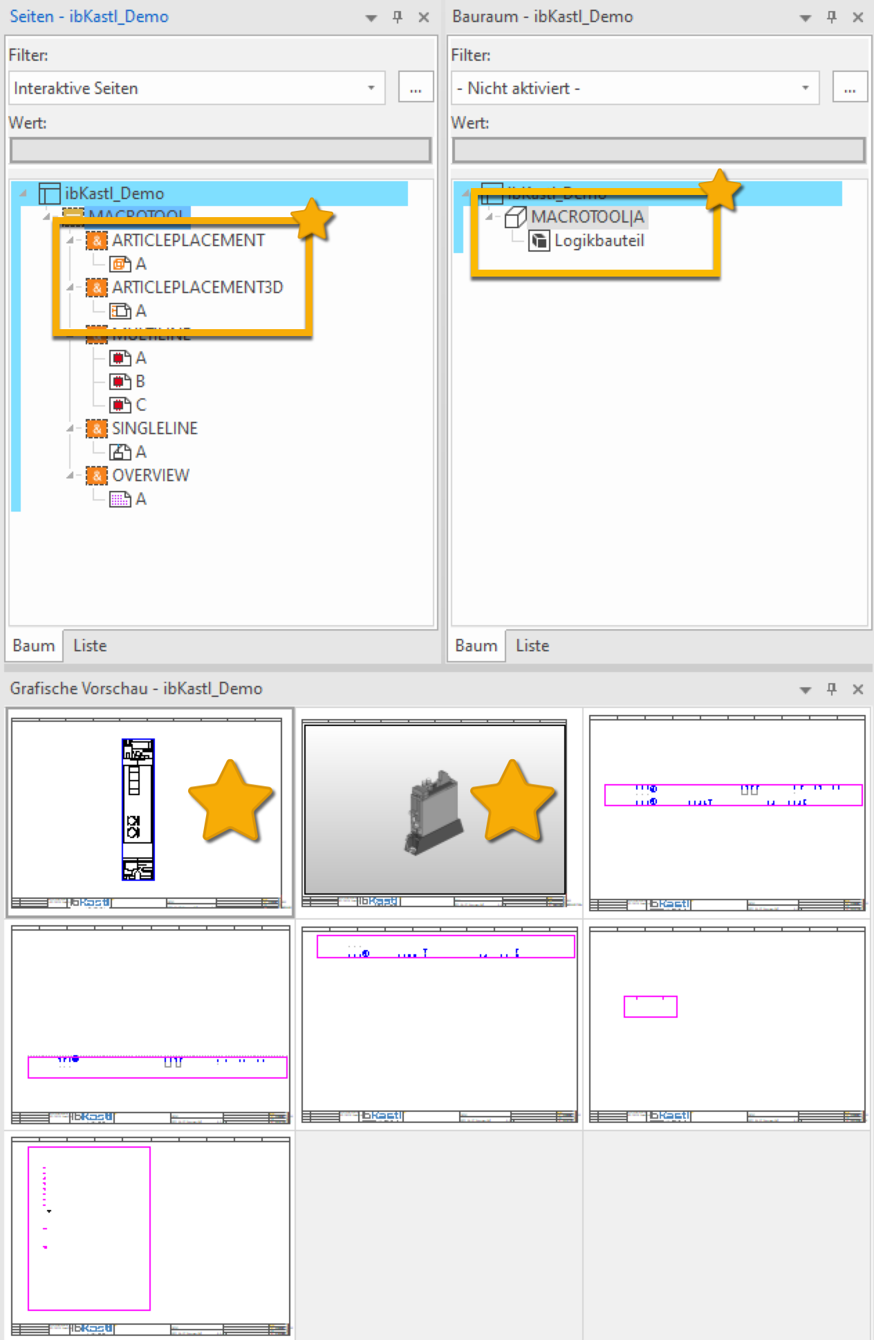 Automatisches Platzieren von 3D-Makros: Wenn einem Grafikmakro ein Pro Panel Makro zugeordnet ist, wird dieses nun automatisch in einen neu erstellten Bauraum eingefügt. Das spart Zeit und verbessert die Integration in 3D-Layouts.